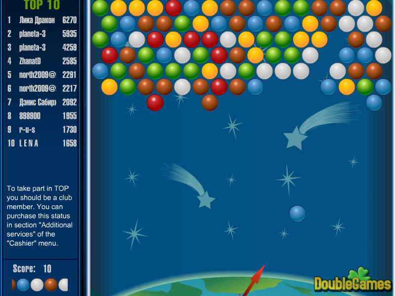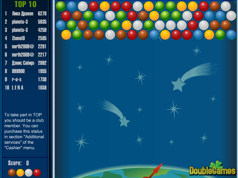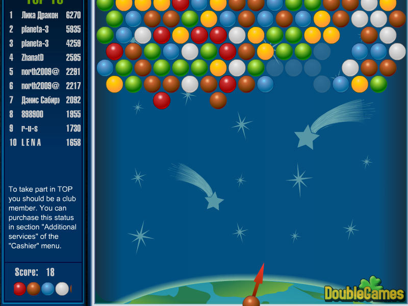 Balloonsは1人のプレーヤーのためのゲームです。 可能であるのと同じほど多くのポイントを 得点しよ して ゲームの目標はフィールドからボールを除くことです。 ゲームの間、プレーヤーは運動場の方へ撃って、目的はプレーしているマウスで直されることができます。 プレーヤーに撃たれているボールがグループに加わる時、ボールは今のところ1つの色のグループとして除かれます。 ボールが運動場全体を占領する時、ゲームは終わります。 あまり難しくないゲームです、しかし、本当に病み付きになります。 それをして、もしそうすることができれば、それを止めるように努めてください!