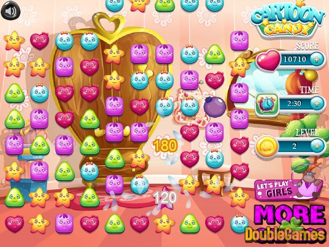 ここで別のかわいいと面白い無料のオンラインマッチ3ゲームCartoon Candyが来ます!非常にカラフルな設定でプレイボード上に配置されている別のハート形、星形と丸いシンボルがあります。あなたはとても急いでプレイ異なる可能な一致の彼らの謎を明らかにする必要があります。毎分は貴重ですので、あなたがあなたの時間を見ていることを確認します。あなたのマッチ??3のスキルを向上させ、フリーゲームのCartoon Candyをプレイする楽しみを持っています。