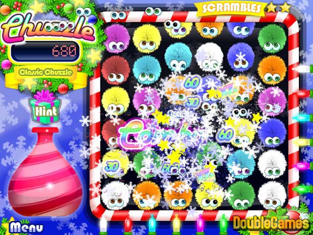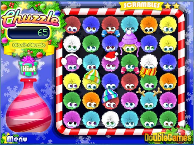 Chuzzlesは、あなたが1つの列でそれらの3つと合う時おかしな音を立てる柔毛質のボールです。 これほどかわいらしくて生き物は一緒にパーティーに出るのが好きで、自分たちを分類するためにあなたの援助を必要としています! 様々な指示〔方向〕のChuzzlesのライン〔回線〕がお互いと同じ生き物を合わせるように動機づけてください。 プレーして、あなたが好きなものを選んで、Chuzzleを楽しむために、この素晴らしいゲームは4つの異なるモードを持っています: 終わりまでのクリスマス版!