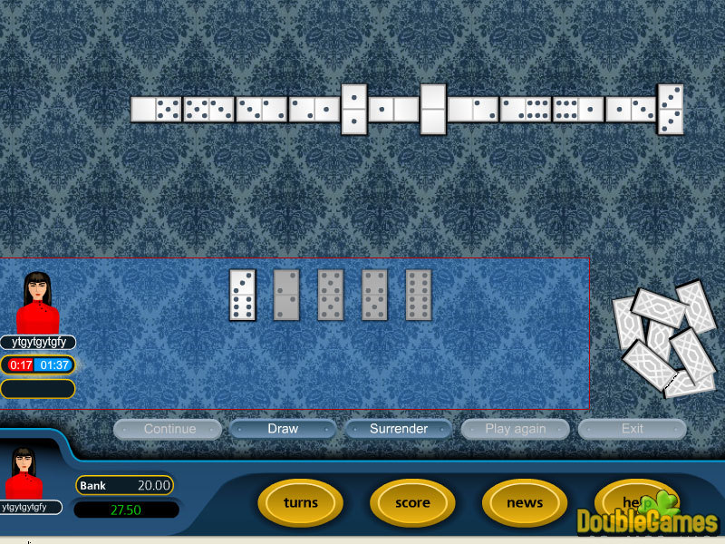ドミノは古代のゲームです。それは同様に今日全ての年の人々に人気があります。 世界中の使用とそれらとされることができるたくさんのゲームの中に何タイプもの種々のドミノセットがあります。 ゲームの対象〔目的〕は、ポイント〔点〕のagreed-upon数(100 - 500)に達する最初の人であることです。 ポイント〔点〕が、チェーンの終わりが5つの倍数に合計するさらされた人を(5)にすることによって手のプレー〔劇〕の間で与えられえます。 全てのタイルを使う最初のプレーヤーはゲームに勝ちます。 いったん勝っている部分がチェーンの上に置かれれば、ゲームは終わっていて、得点で数えられるためにプレーヤーたちは残りの部分をさらします。 一度もこのゲームをした時がないあなたはもちろん、それをすべきです。 幸運を祈る!