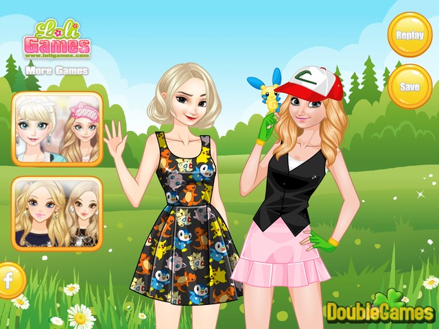 ポケモンがあふれています。この携帯ゲームは、全世界が夢中になりました。冷凍姉妹アンナとエルザは、??同様にポケモン囲碁の巨大なファンです!彼らは、この新しい無料のオンラインゲームFrozen Sisters - Pokemon Fansに自分の好きなアプリのスタイルでドレスアップ助けて!女の子のワードローブを開き、かわいい衣装を選択します。楽しむ!