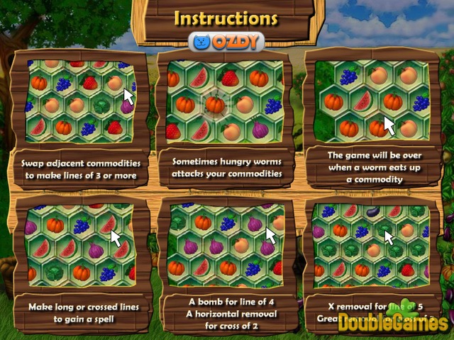 空腹のワームがあなたの工場〔植物〕を攻撃していて、あなたはそれに起こらせることができません。 空腹というタイトルワームの下の新しいオンラインの試合-3ゲームでそれらの全てを脱脂してください。 このゲームであなたはそれらが全部を悩ませる前に野菜と果物を集めなければなりません。 急いで、その日を節約してください。 外にリンゴにかみつくより悪いワームがずるずる滑るのを見る何かがありますか? 全くただで空腹のワームを私たちのウェブサイトに仕掛けて、たくさんの楽しい時を過ごしてください!