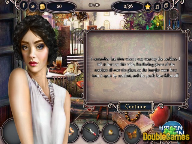 真珠の新しい無料隠されたオブジェクトのゲーム文字列へようこそ。エヴァは、彼女の夫は結婚の存在の記念として、彼女に与えた彼女の真珠のネックレスを失いました。彼らは幸せに生活し、長年にわたって結婚していました。彼女はネックレスがどこかに隠れていることを信じて、家の隅々を探索を開始します。あなたは彼女がそれを見つけましょうか!詳細ですべての部屋を探検、すべての可能な場所を考え、あなたの隠されたオブジェクトのスキルをチェックして、状況を保存します。がんばろう!