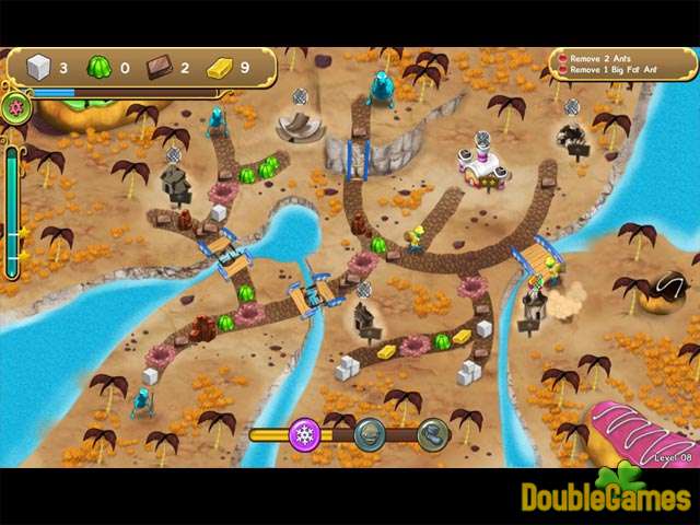 ベーカリー島はアリの軍隊でオーバーランされています!管理者は、壊れた家屋、工場を復元する助け、この挑戦??的な時間管理のゲームでの侵略者を追い払います!